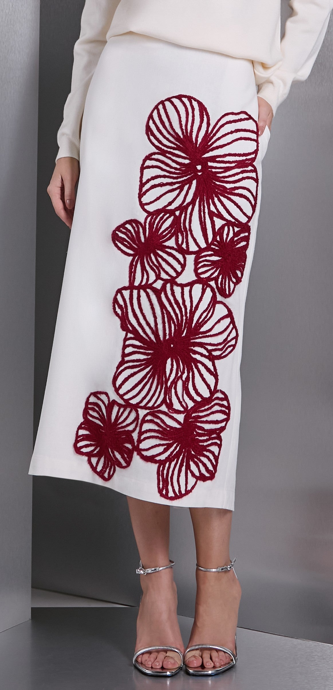 JUPE MI-LONGUE - BRODERIE FLORAL