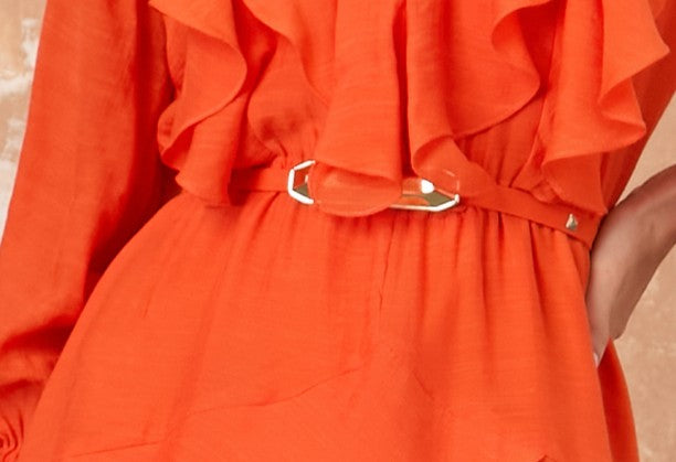 ROBE COURTE À VOLANTS - AVEC CEINTURE - ORANGE VIF